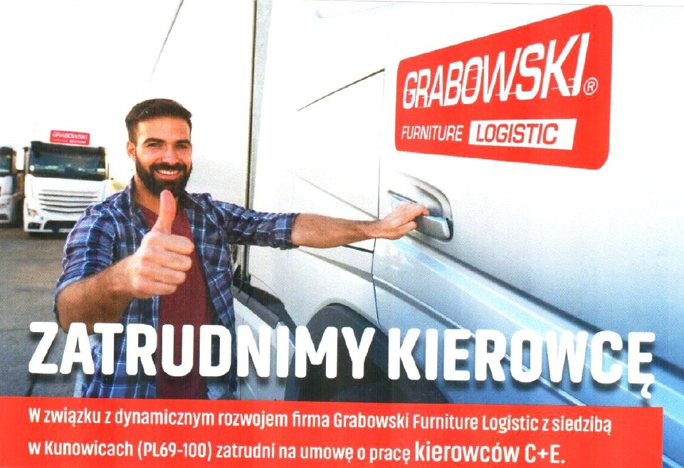 В связи с динамичным развитием компании Grabowski Furniture Logistic расположенной в Куновицах (PL69-100) мы нанимаем на работу водителей C+E.